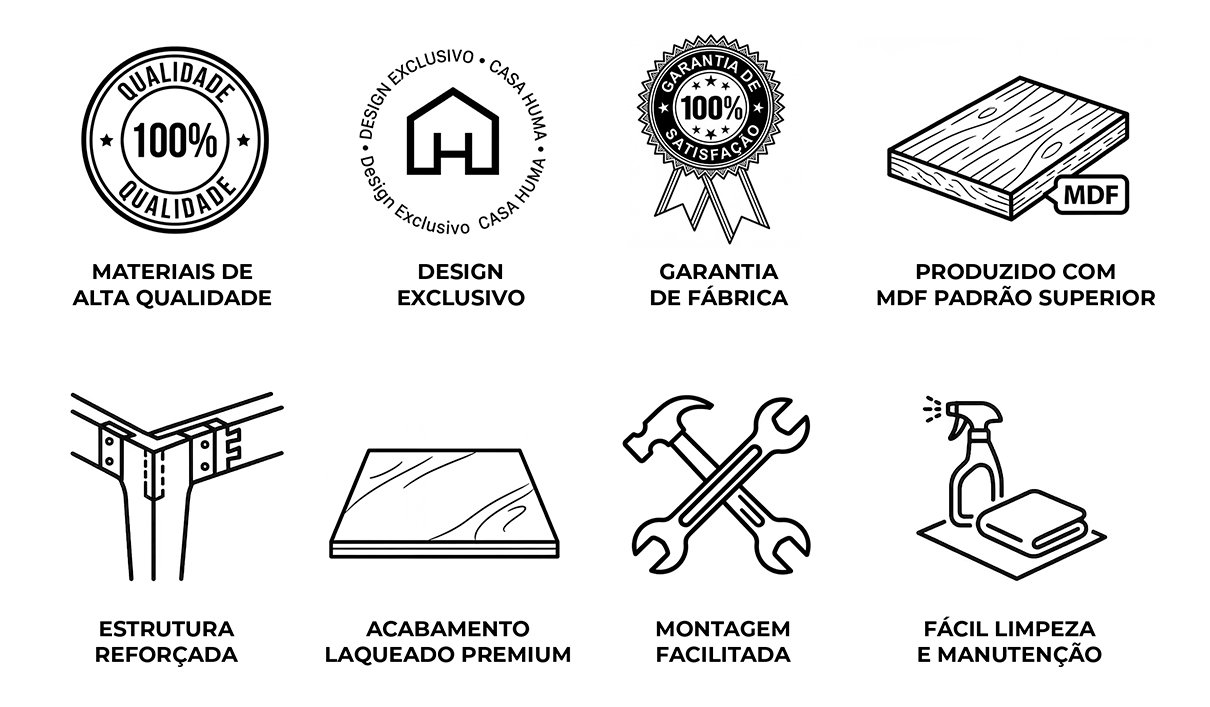 ✔ MDF de alta densidade: estrutura produzida em MDF de alta qualidade, garantindo excelente resistência, estabilidade e maior vida útil.